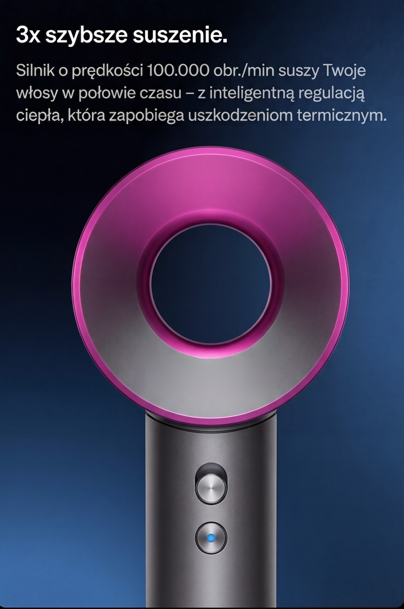 Z AirPro 12-15 minut i gotowe. Serio. Diffuzor robi robotę na lokach, końcówka do prostowania działa bez prostownicy. To 5 urządzeń w jednym i nie przesadzam.